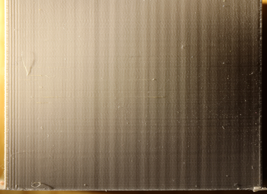Extreme low angle light from the side turns the smooth surface of a heat tower diagonal above into a landscape of mountains and valleys. The image is not unsharp, but the structures are quite weak, even with extreme light. The visual inspection shows a pattern that is too stable for being caused by the extruder. Diagonal side for moving A motor: