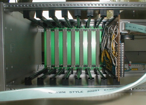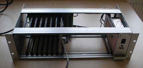 The backplane has 10 slots, bought from Reichelt for 20 EUR.