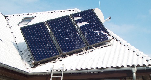 Die Heizungsunterstützung war leider noch nicht fertig und die fehlende Rohrdämmung verlor außen noch viel, aber die Anlage lief.