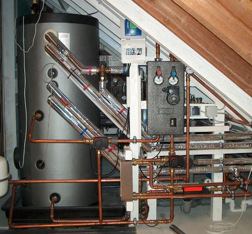 Ich war auf die Heizungsunterstützung einer typischen Warmwasseranlage sehr gespannt. Der erste Versuch im Sommer endete zum Feierabend mit einem ziemlich warmen Haus, weil die Heizkörper im Erdgeschoss vom Winter noch aufgedreht waren. Damit war immerhin klar, dass es funktionierte. An der Anlage war ohne Rohrdämmung die reinste Sauna, was natürlich noch anders werden muss. Das erste vollständige Betriebsjahr ergab am Wärmemengenzähler einen Ertrag von über 2500 kWh und die folgenden Jahre jeweils noch etwas mehr.